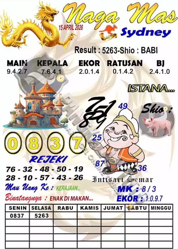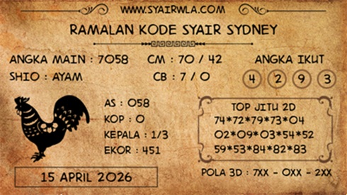 SYAIR PREDIKSI KELUARAN SYDNEY, 15-Apr-2026
