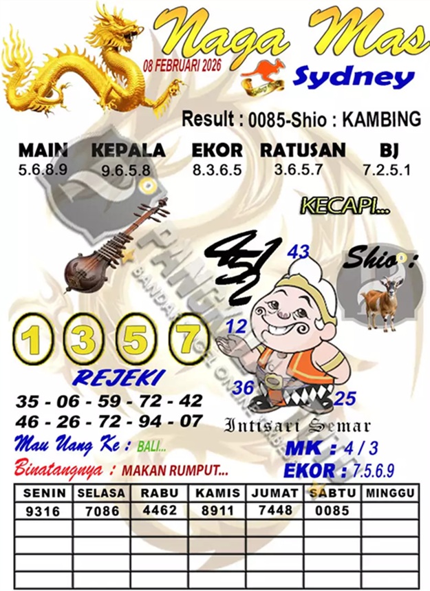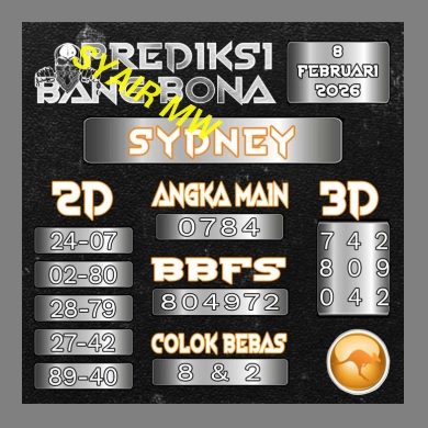 SYAIR PREDIKSI KELUARAN SYDNEY, 8-Feb-2026